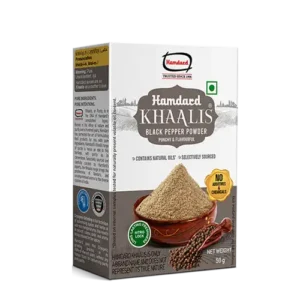 Is natural. It is free from preservatives, artificial colour and additives. Made from high quality whole Black Pepper that contains natural oils, Hamdard Khaalis Black Pepper Powder consists of natural Piperine that imparts intense aroma and heat to your food. This is how Hamdard adds more depth and intensity of flavor to your dishes.