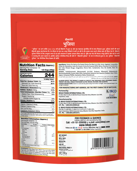 Bikaji Bhujia No. 1 is an authentic Indian snack that delivers a delightful crunch with every bite. Made from high-quality ingredients, this savory treat is spiced to perfection, making it an ideal companion for tea or as a standalone snack. Enjoy th e rich flavors and traditional taste of India with Bikaji Bhujia, a favorite among snack lovers. Perfect for parties, picnics, or simply satisfying your cravings.