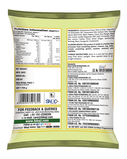 Bikaji Hara Matar Chatpata is a crunchy green pea snack, spiced with tangy and zesty flavors for a tasty, chatpata munch anytime.