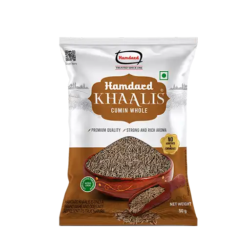 Contains natural Cuminaldehyde. It is an essential ingredient in Indian cooking that adds nutty and warm flavour to food. Free from preservatives and artificial colour, this Hamdard Khaalis whole spice is devoid of additives & chemicals.